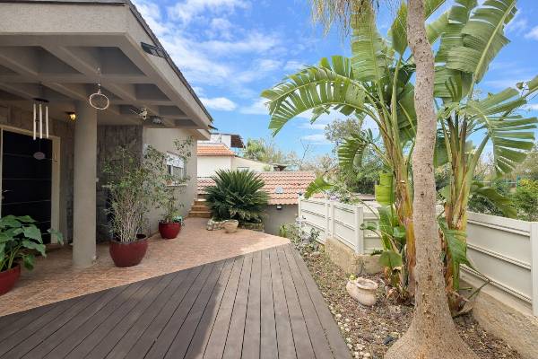חצר קדמית + חצר אחורית מרווחות עם פרגולות