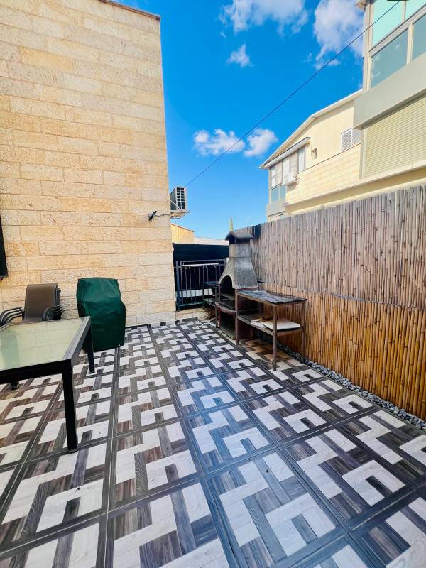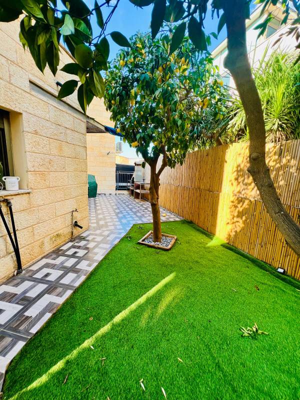 גינה יפה כ-100 מ״ר, מרפסת כ-30 מ״ר (מתוכם כ- 12 מ״ר מקורה), לנוף הפתוח בקומה השלישית שחלק ניתן להפוך ליחידת דיור או לחדר נוסף בבית.